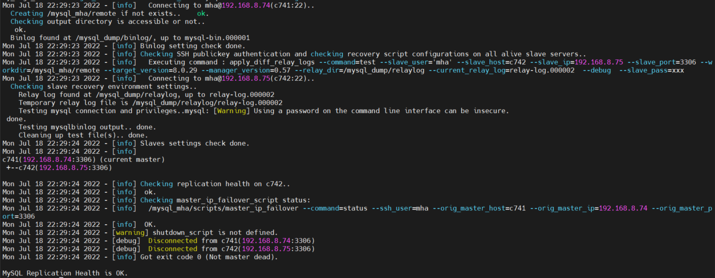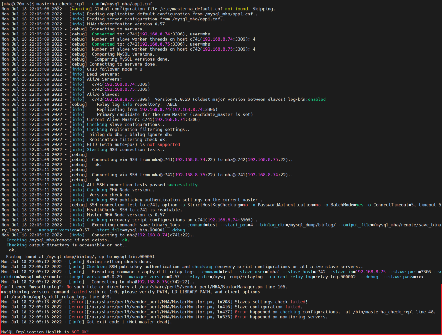 | masterha_check_repl --conf=/mysql_mha/app1.cnf |