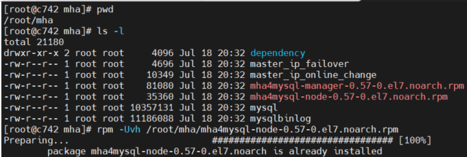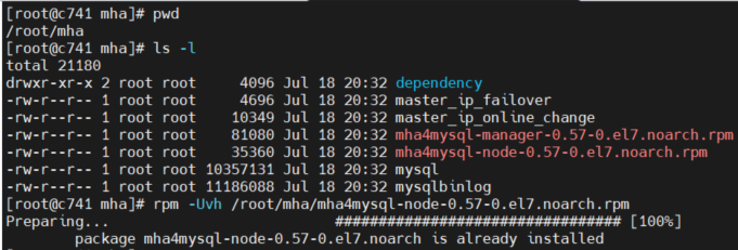 | su - cd /root/mha cp mysql /usr/bin/ cp mysqlbinlog /usr/bin/