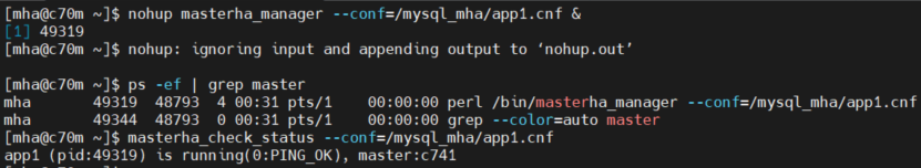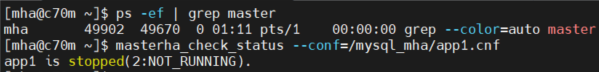 ps -ef | grep master masterha_check_status --conf=/mysql_mha/app1.cnf |