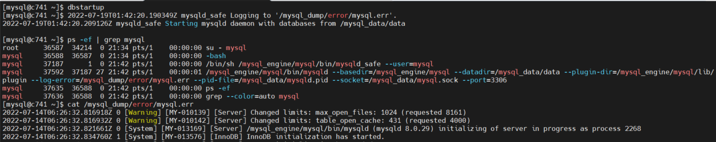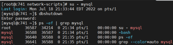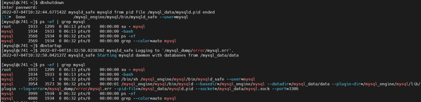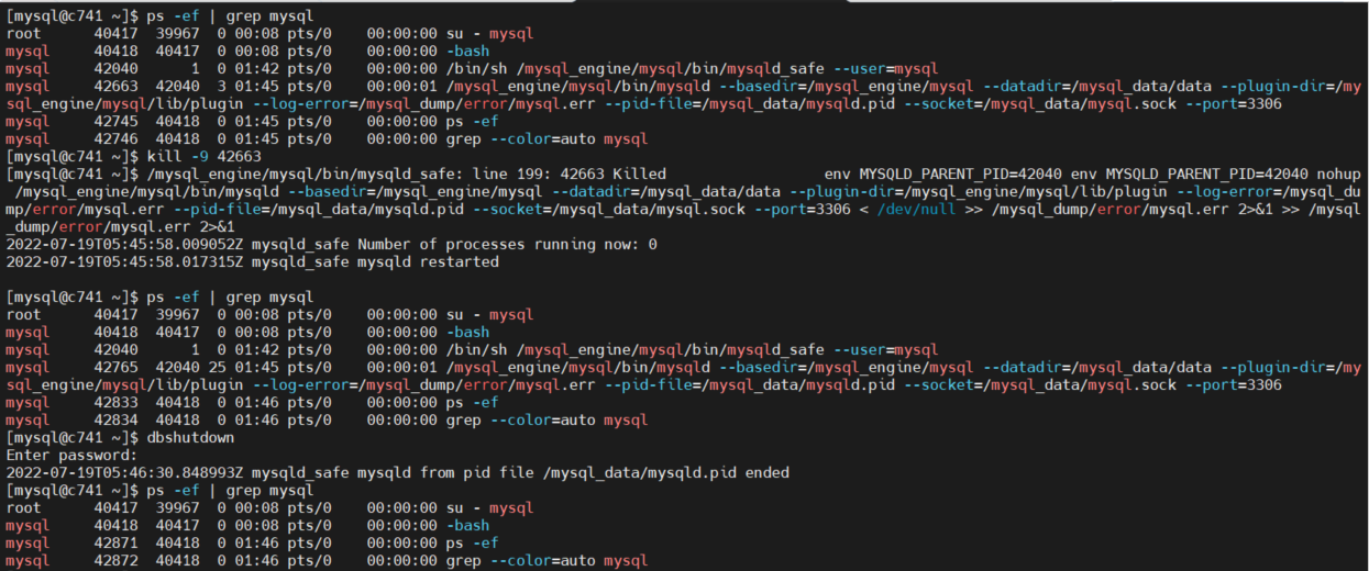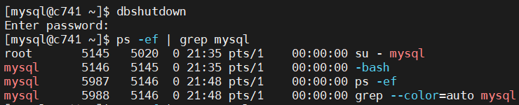 | ps -ef | grep mysql kill -9 혹은 dbshutdown |