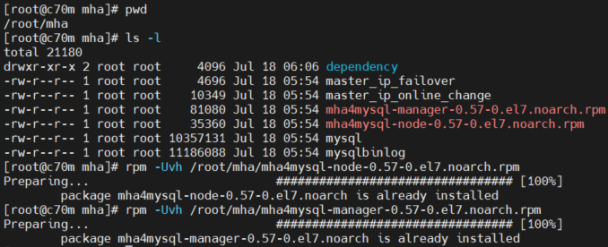 [설치 파일(/root/mha디렉터리 내부로 업로드)]