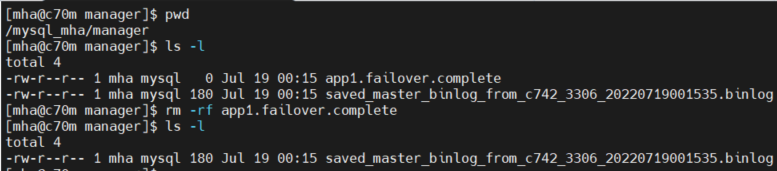 | rm -rf /mysql_mha/manager/app1.failover.complete |