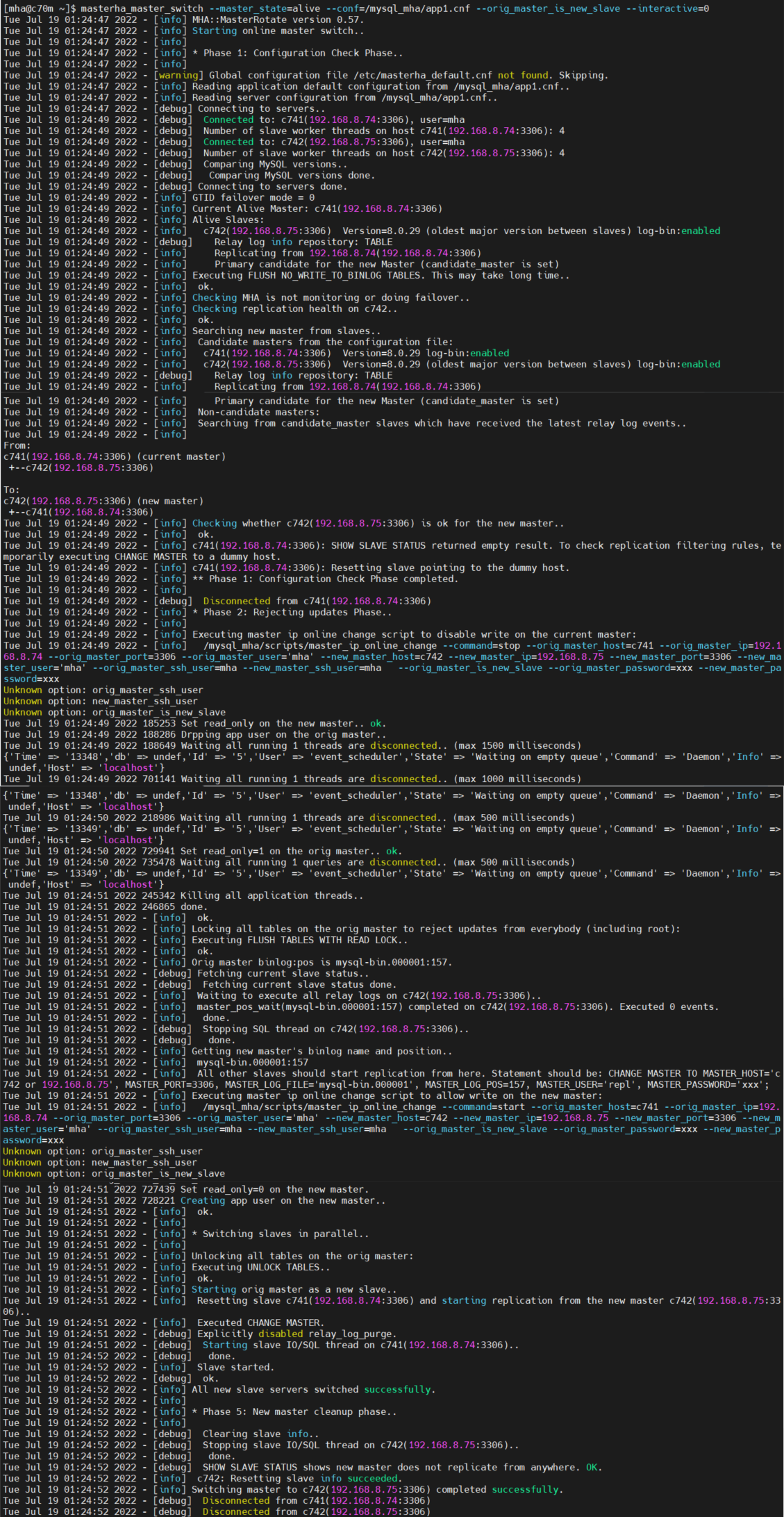 masterha_master_switch --master_state=alive --conf=/mysql_mha/app1.cnf --orig_master_is_new_slave --interactive=0