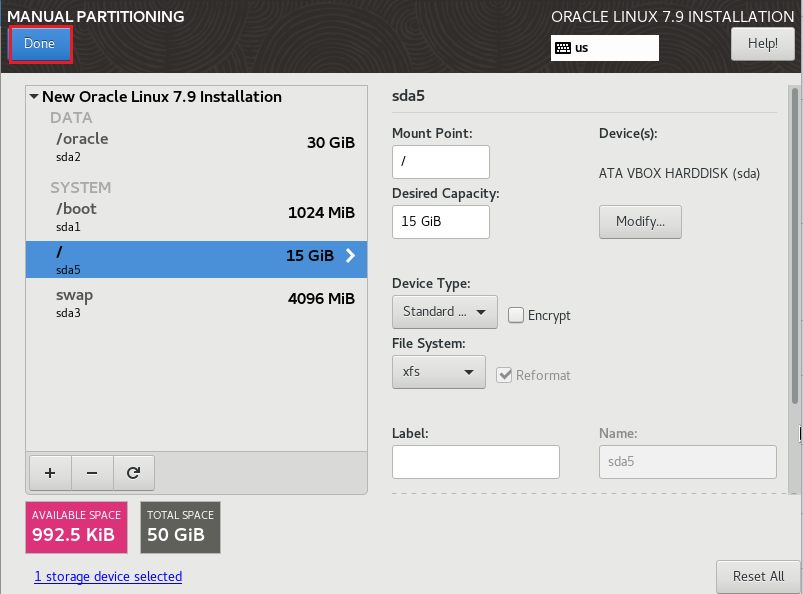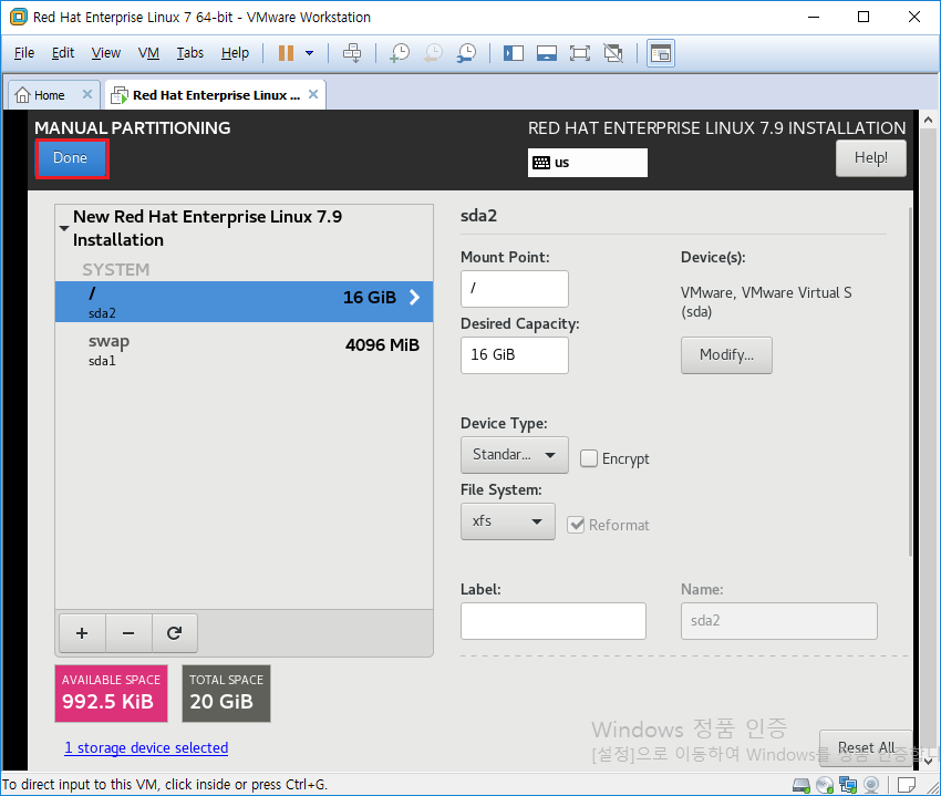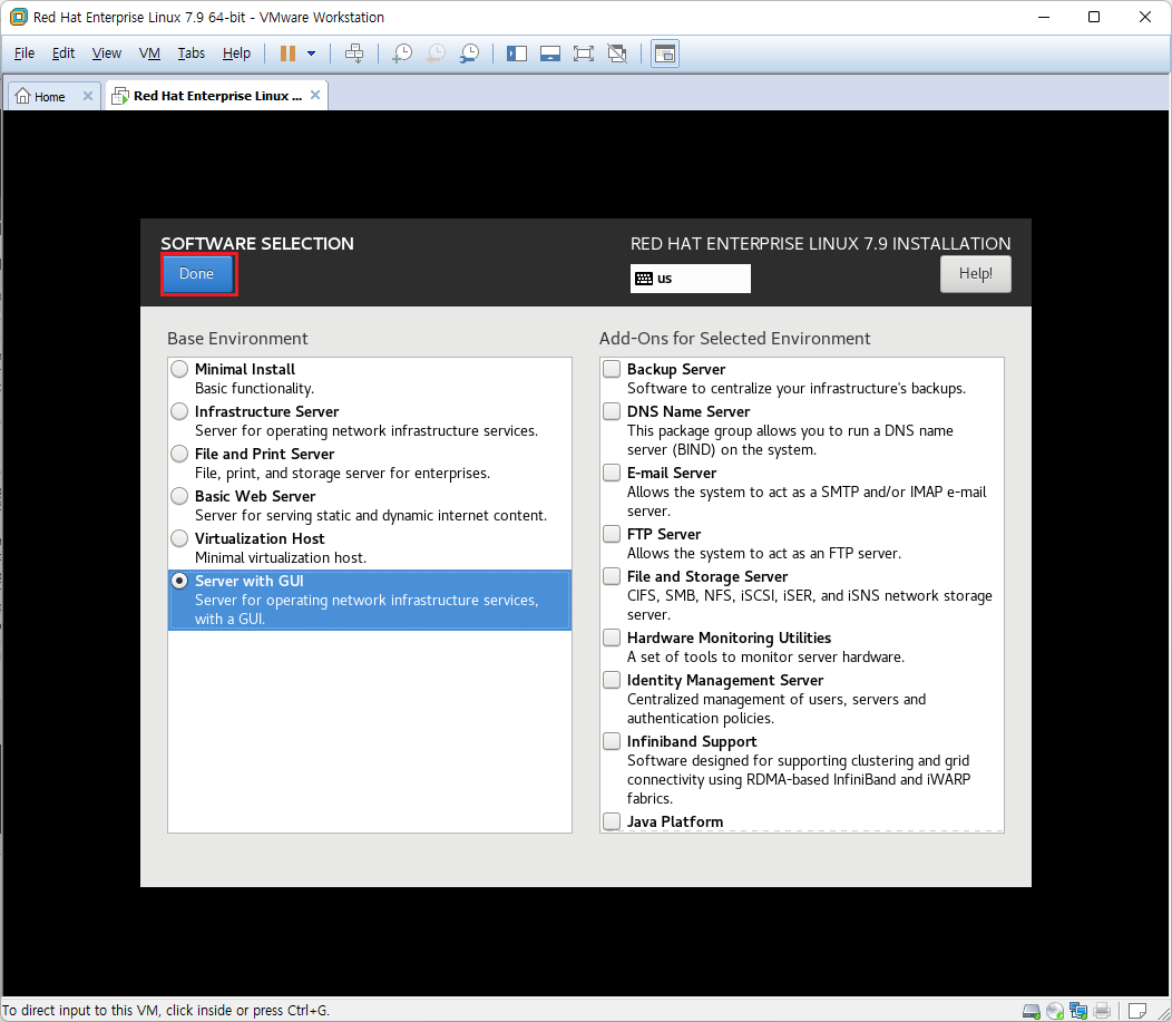 Oracle Linux 7.9(Server GUI 설치 완료)