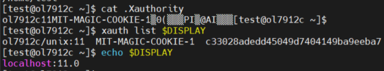 내부 Xauthority값은 아래 명령어로 확인 가능, xauth list에 등록된 값이 DISPLAY 변수에서 쓸 수 있는 포트값
